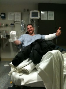 Now, I’m sure some of you have heard about the dangers of deep-frying a turkey and consequently, I’m sure you have an idea of where this story is going. I’m here to tell you that you’re wrong. It wasn’t PJ who ended up in the ER with burns to his arms and singed-off eyebrows (although he probably should have too), it was Justin. Poor, unsuspecting Justin got in a scuffle with a fireball; he put up one heck of a fight, but the fireball took this round.