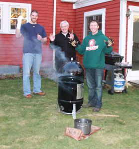 When we last left off, Justin was preparing a turkey for the big Christmas Day Turkey Off. The rules were simple: Justin would smoke a turkey and my brother PJ would fry a turkey and a panel of unbiased judges would perform a blind taste test and vote on a winner. We did the math and figured out what time they would need to start cooking for everything to be ready by the official start time (1pm). Recipes were researched and gear was set up in the backyard of my parents house. We were golden. We were pumped. We had visions of sugar plums turkeys dancing in our heads.