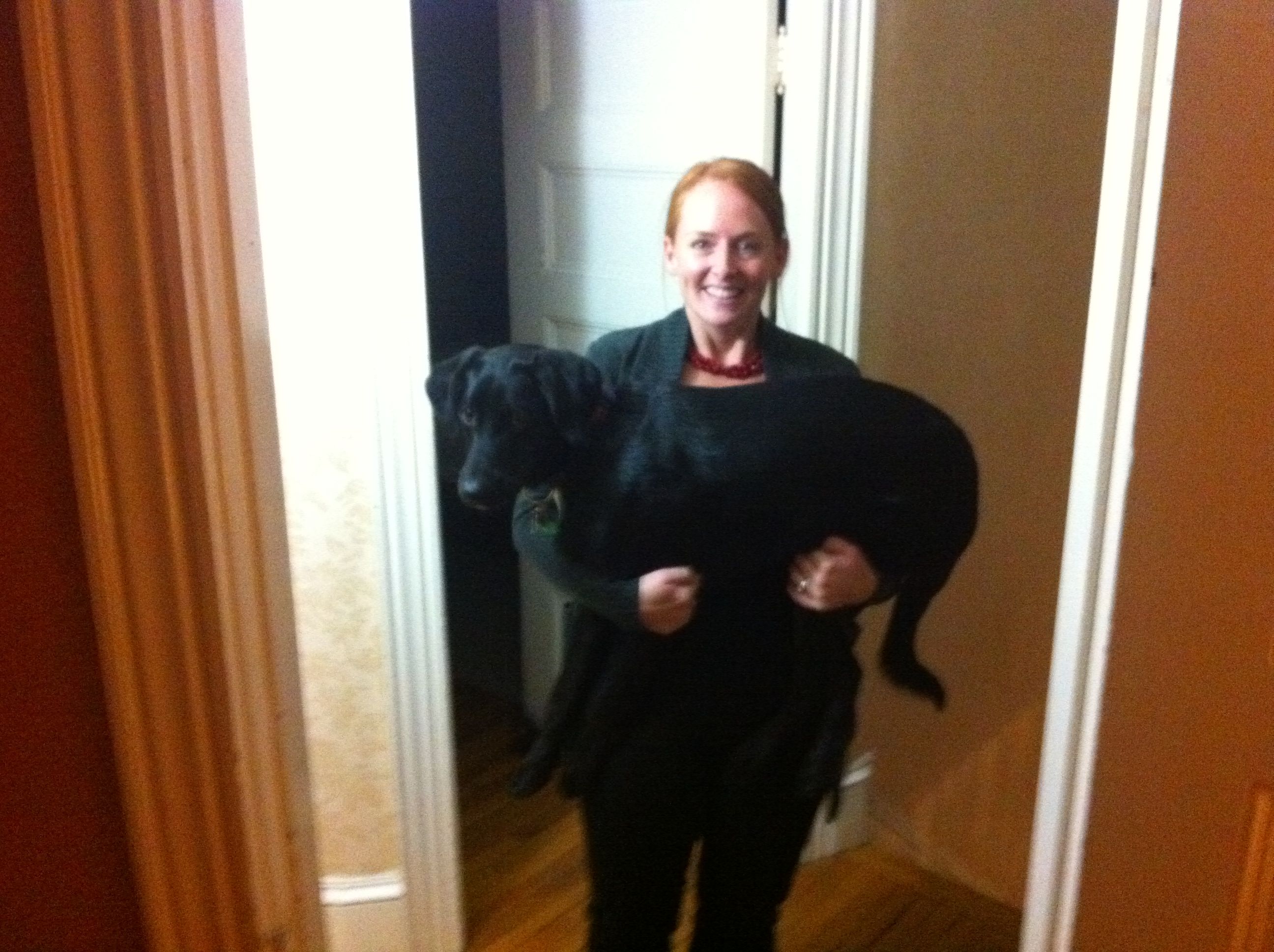Sometimes when Brody is really running amok, he seems like a lot more dog than he is; when he’s tearing around the house with a 5-foot branch that he chewed off of the Christmas tree like it’s a Milkbone, it seems like he’s bigger than the knee-height, 50-pound dog that we know and love.