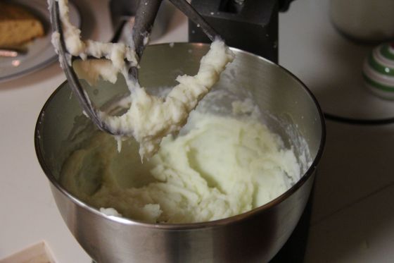 and transfer to a large bowl. I used an electric mixer which yields really smooth mashed potatoes; you can also mash the potatoes by hand if you prefer a coarser texture.