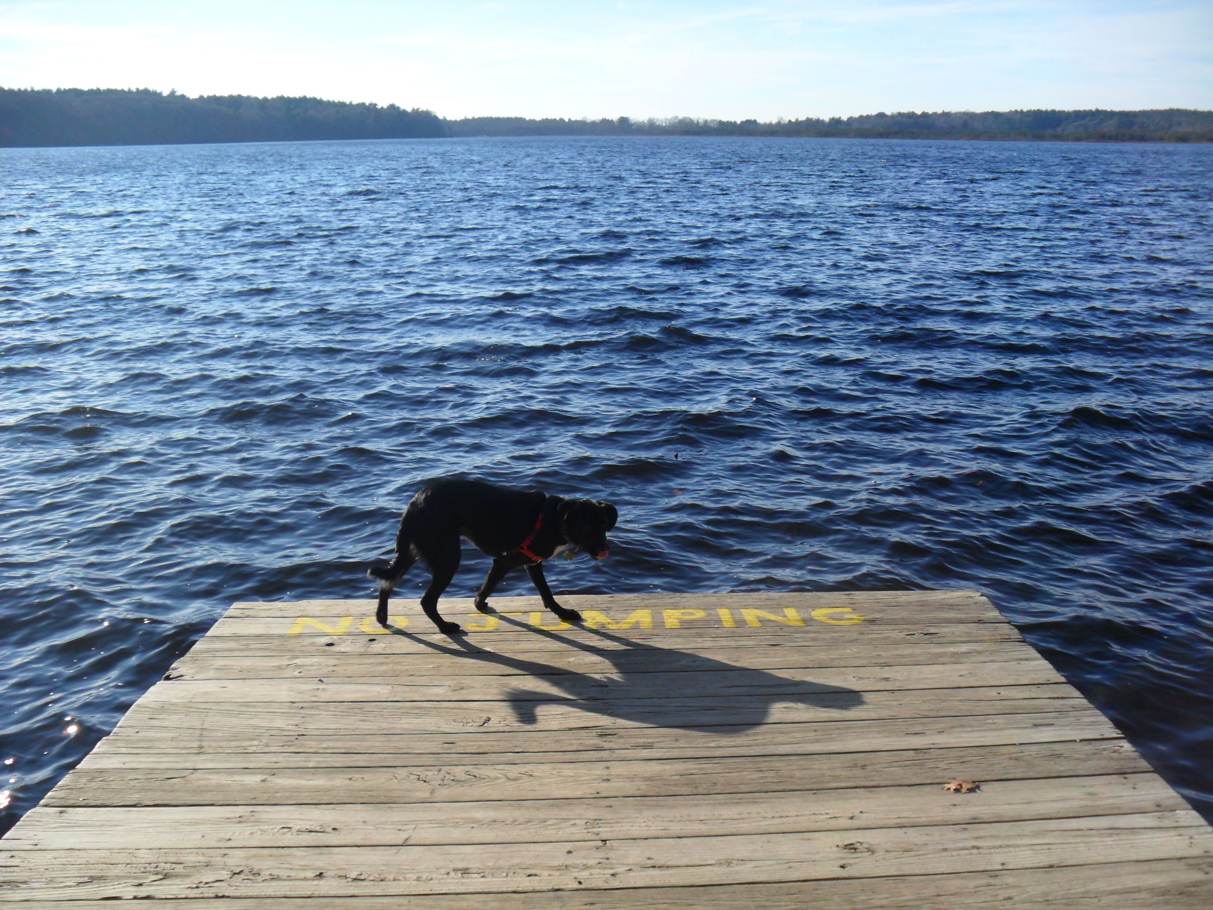 Oh man, if only B could read! He would have been off that dock so quickly if he had known that jumping was against the rules.