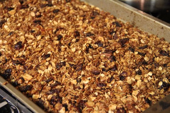 Cook for 15 minute intervals, removing the pan and mixing the granola in between.