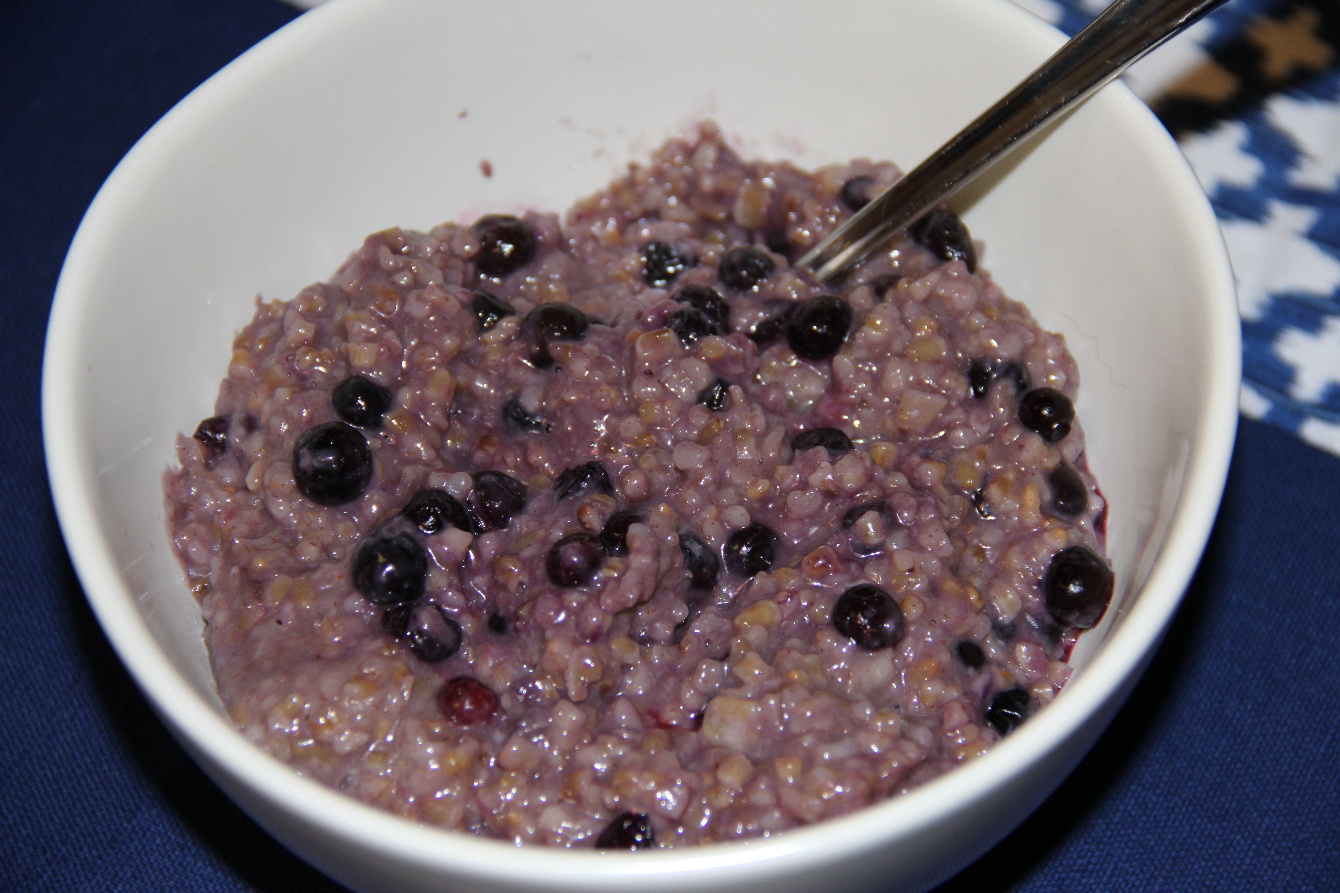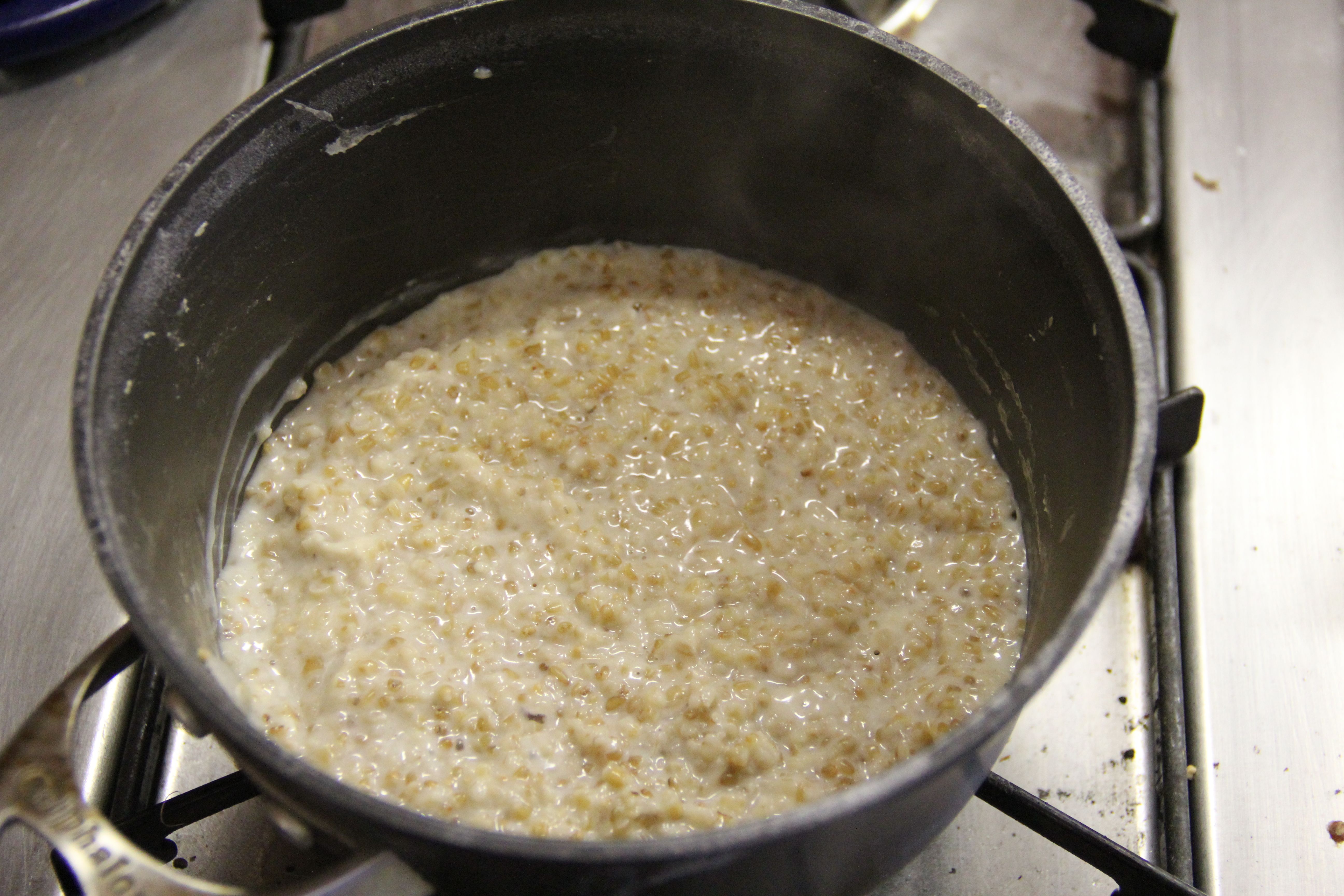When I was at Trader Joe’s last week I saw some steel cut oats in the cereal section. I remembered reading an article somewhere about how healthy they are and how they have a nice texture that a lot of people prefer to regular rolled oats, so I decided to pick some up and see what all of the fuss was about. Turns out that the article was right. They’re great! The steel cut oats keep their form nicely and don’t turn to mush like regular oatmeal does sometimes. They’re kind of chewy and it seems like they have more substance to them (especially compared to the instant oats).