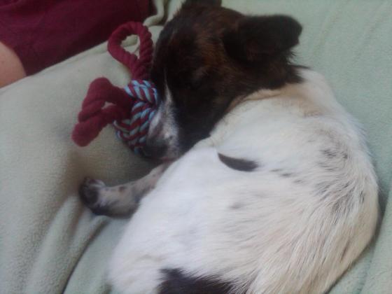 Pippa hails from Tennessee and appears to be a perfect Jack Russell Terrier/chihuahua/daschund mix. This is one seriously cute puppy and SUCH a charmer. Liz and Joe said that the folks at the shelter weren’t sure about her age, but their best guess was under a year. I think B and Pippa are going to be best friends.
