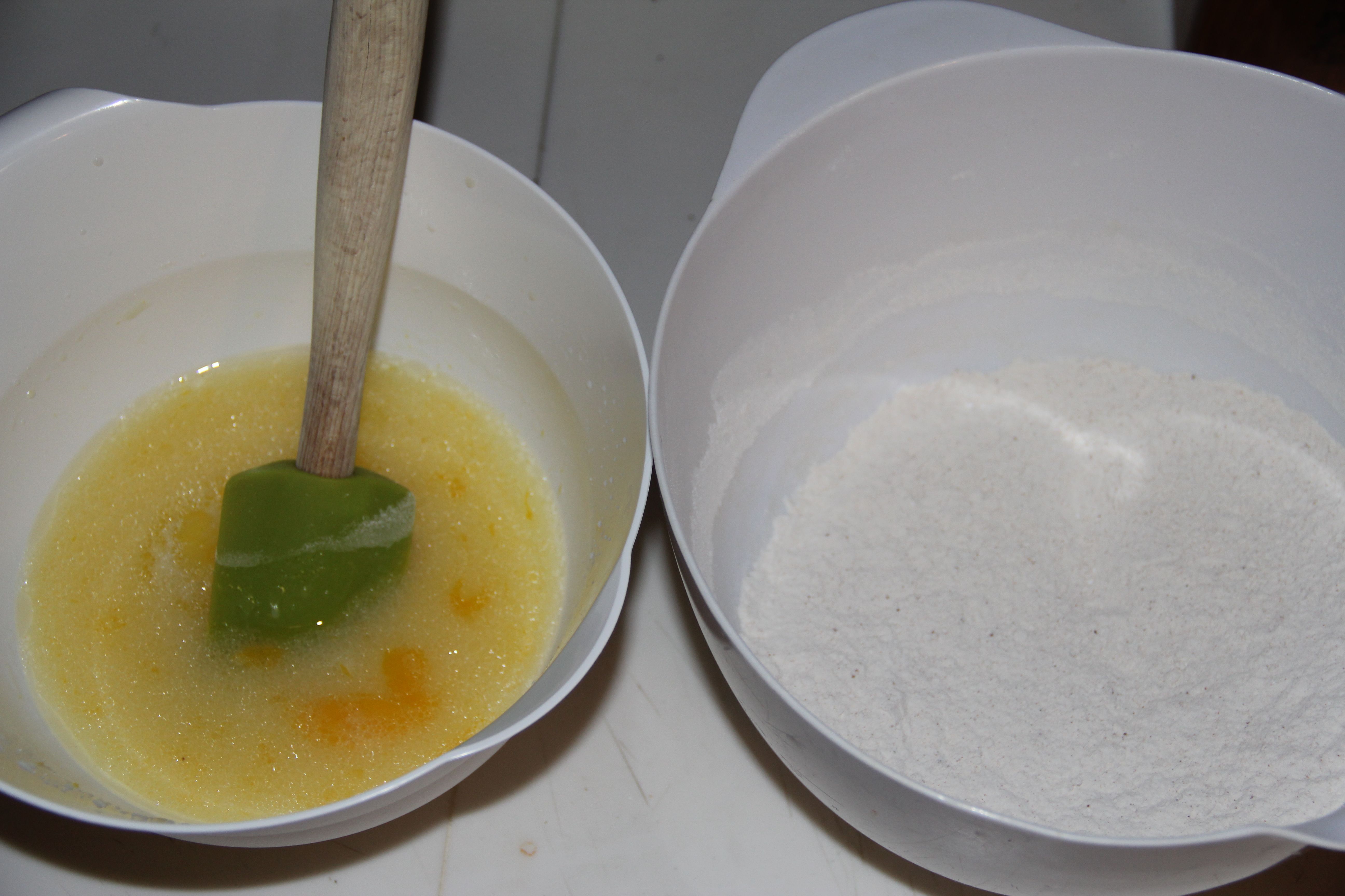 Back to the muffins! Start off by combining your dry ingredients in one bowl and your wet ingredients in another bowl.