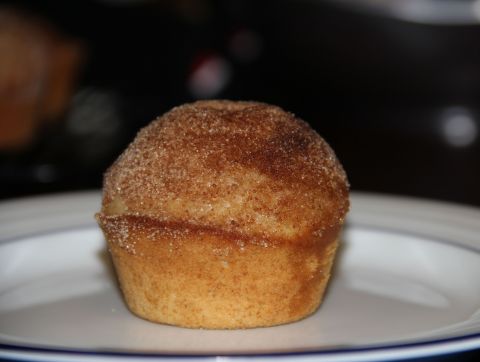 Preheat the oven to 350 degrees. Combine the flour, baking powder, salt, nutmeg and cinnamon in one bowl. Combine the oil, sugar, egg and milk in another. Add the dry ingredients to the wet ingredients and stir just to combine. If you are omitting the butter from the topping, combine the cinnamon and sugar and sprinkle the mixture evenly over the batter. Spray a muffin pan with non-stick cooking spray (or use paper liners) and fill each about 2/3 of the way (using about 1/4 cup of batter in each) and bake for 15-20 minutes. Remove the muffins from the pan while they are still hot. If you are using the butter as a topping, melt it and brush it over the top of each muffin and then dip the muffin into the cinnamon and sugar mixture. Allow to cool.