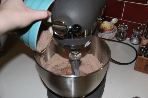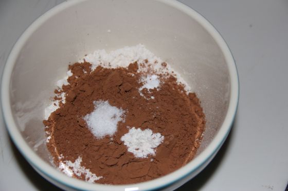 Start by whisking together the flour, cocoa powder, baking soda and salt.