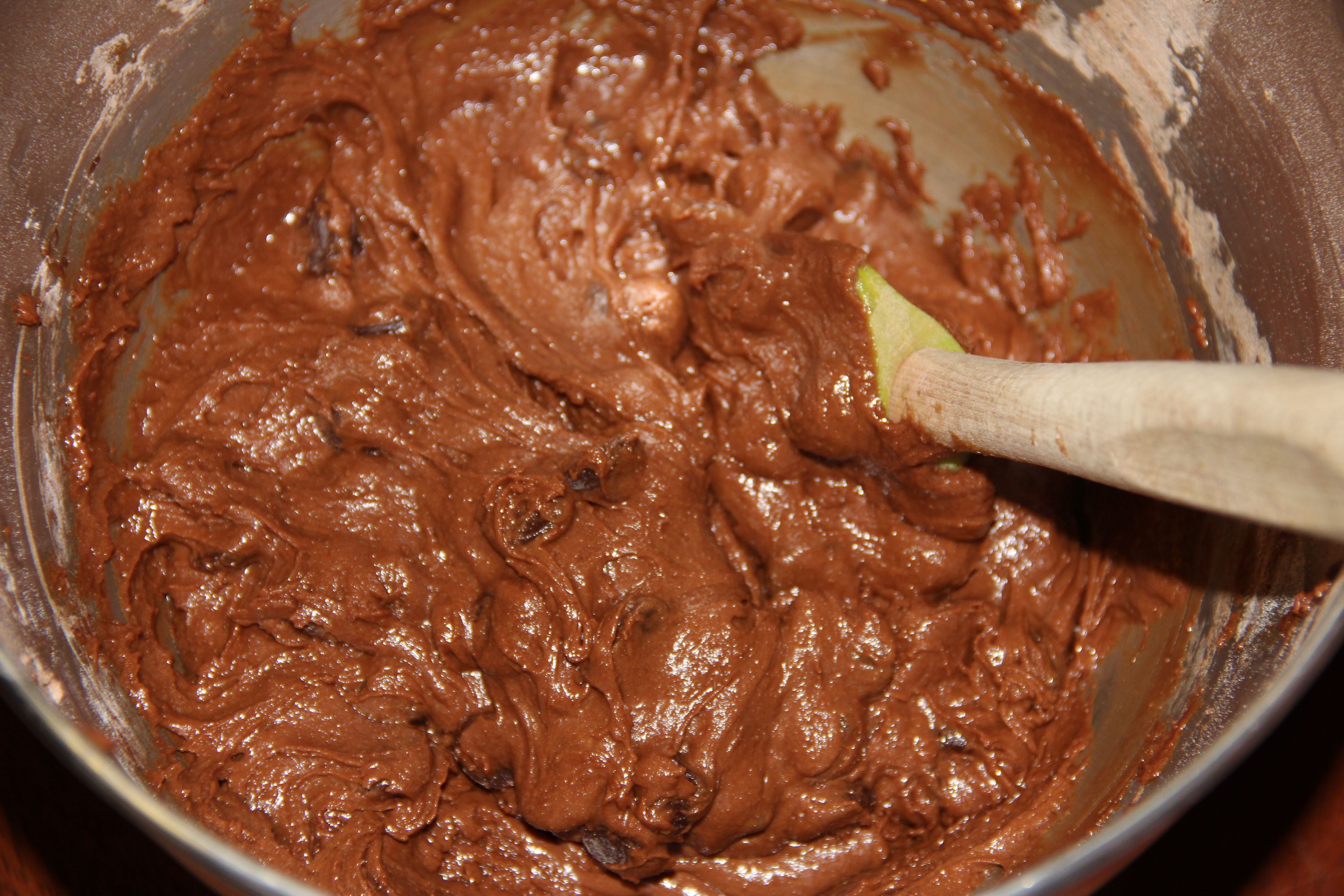 Assuming you haven’t eaten them all already, add in the chocolate chips and mix by hand until incorporated.
