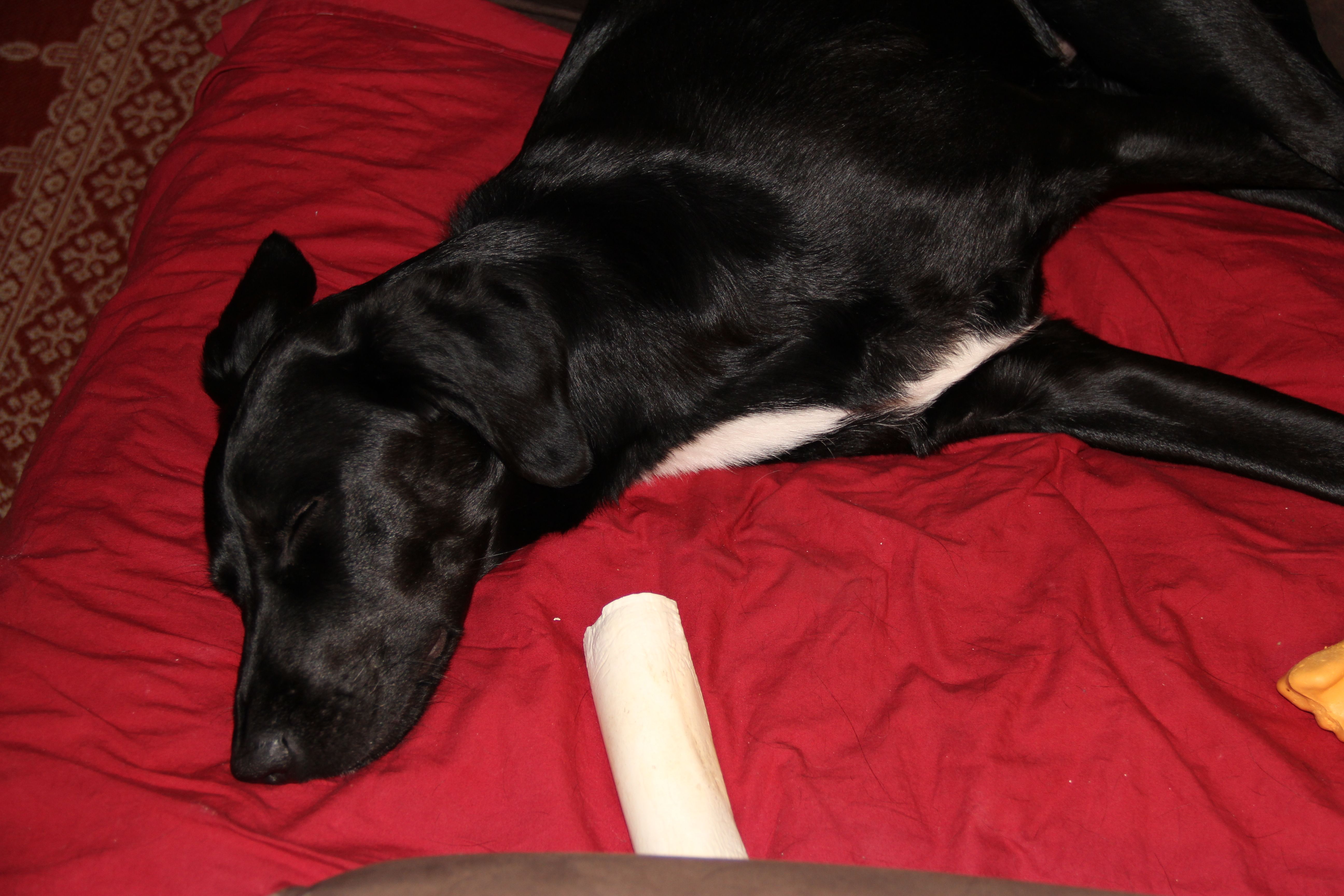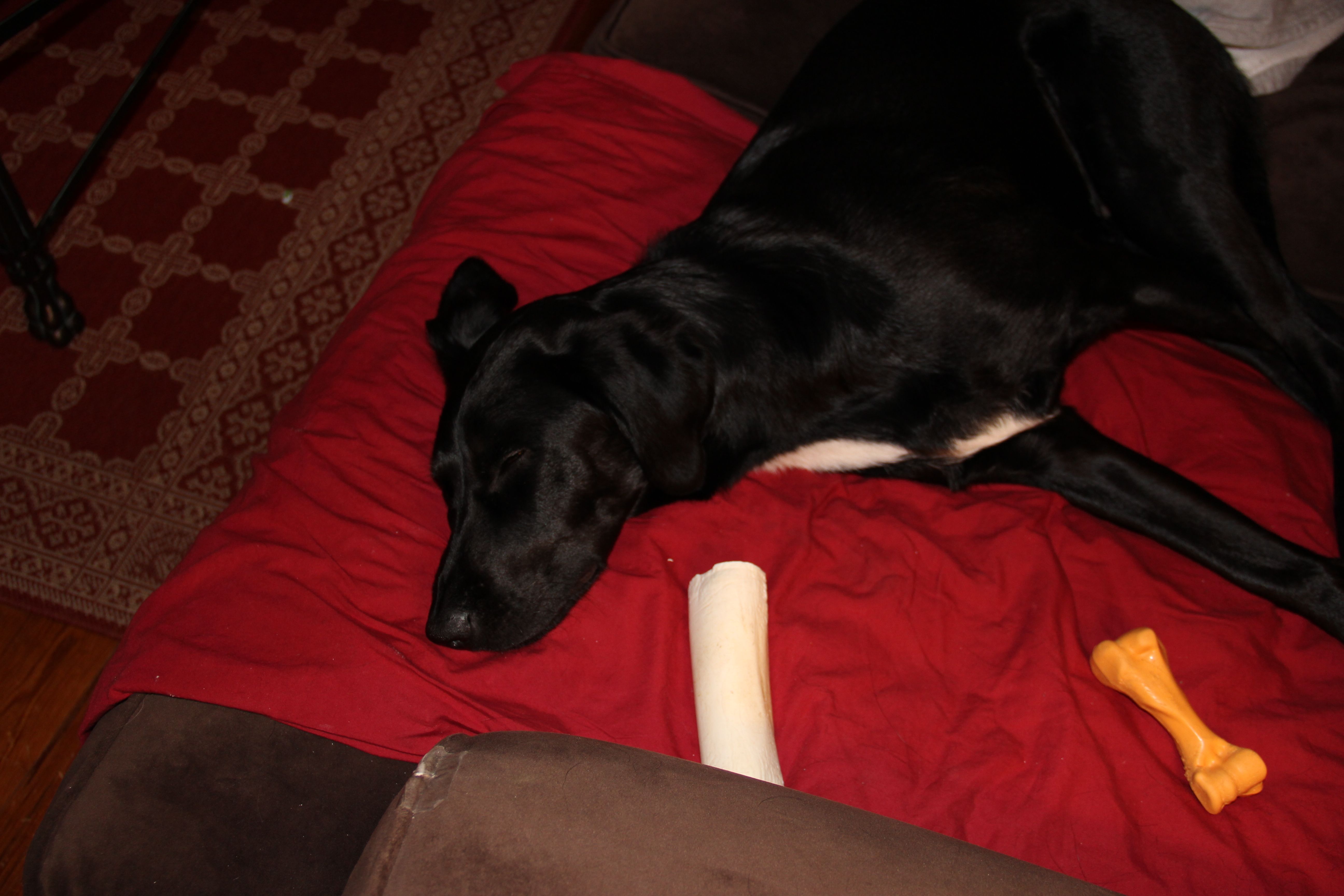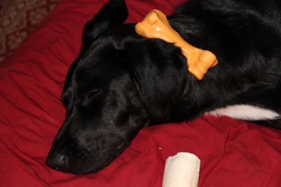 Your favorite bone, right on your head! There’s no way you can sleep through that!!