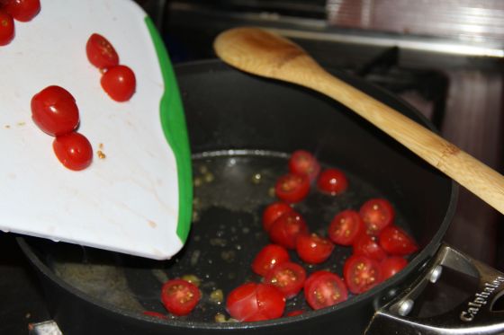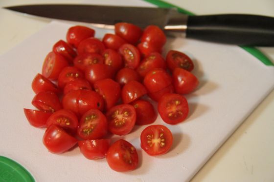 Start by halving a pint of cherry tomatoes