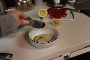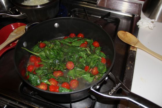 We had a bunch of spinach left over from…something that I can’t remember so I wanted to take the opportunity to try to make a meal that I had botched awhile back: baked cod with spinach and tomatoes and a white wine and lemon sauce. The last time I made this I used way too much lemon and it was just too tart. I altered the recipe a little and it came out pretty good this time! Let’s get cookin’.