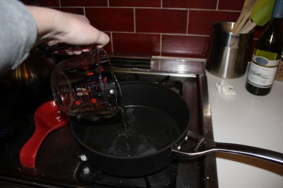 Bring the liquid to a boil and then reduce the heat and simmer until half of the liquid has cooked off.