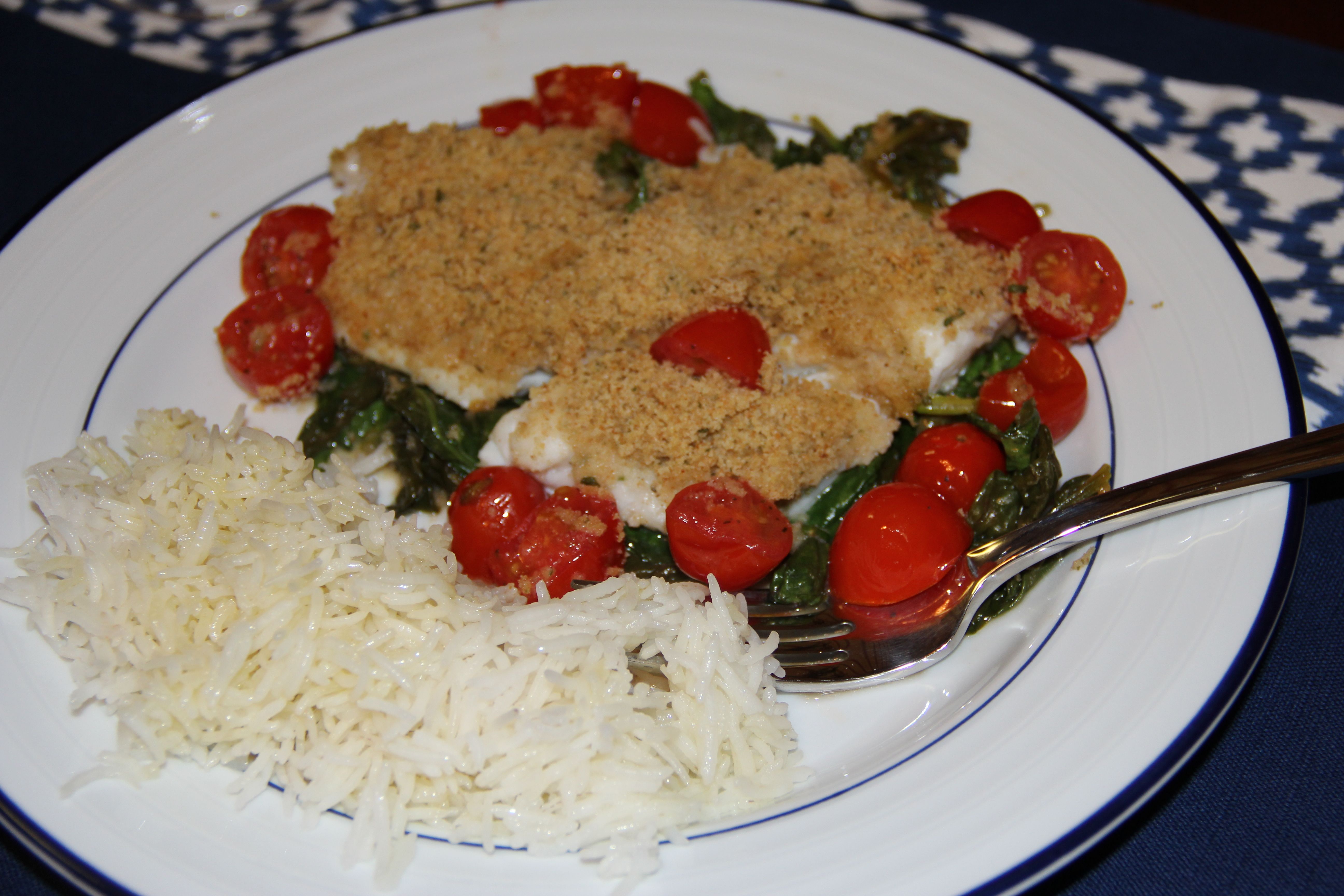 Serve the fish over the spinach and tomatoes and enjoy!