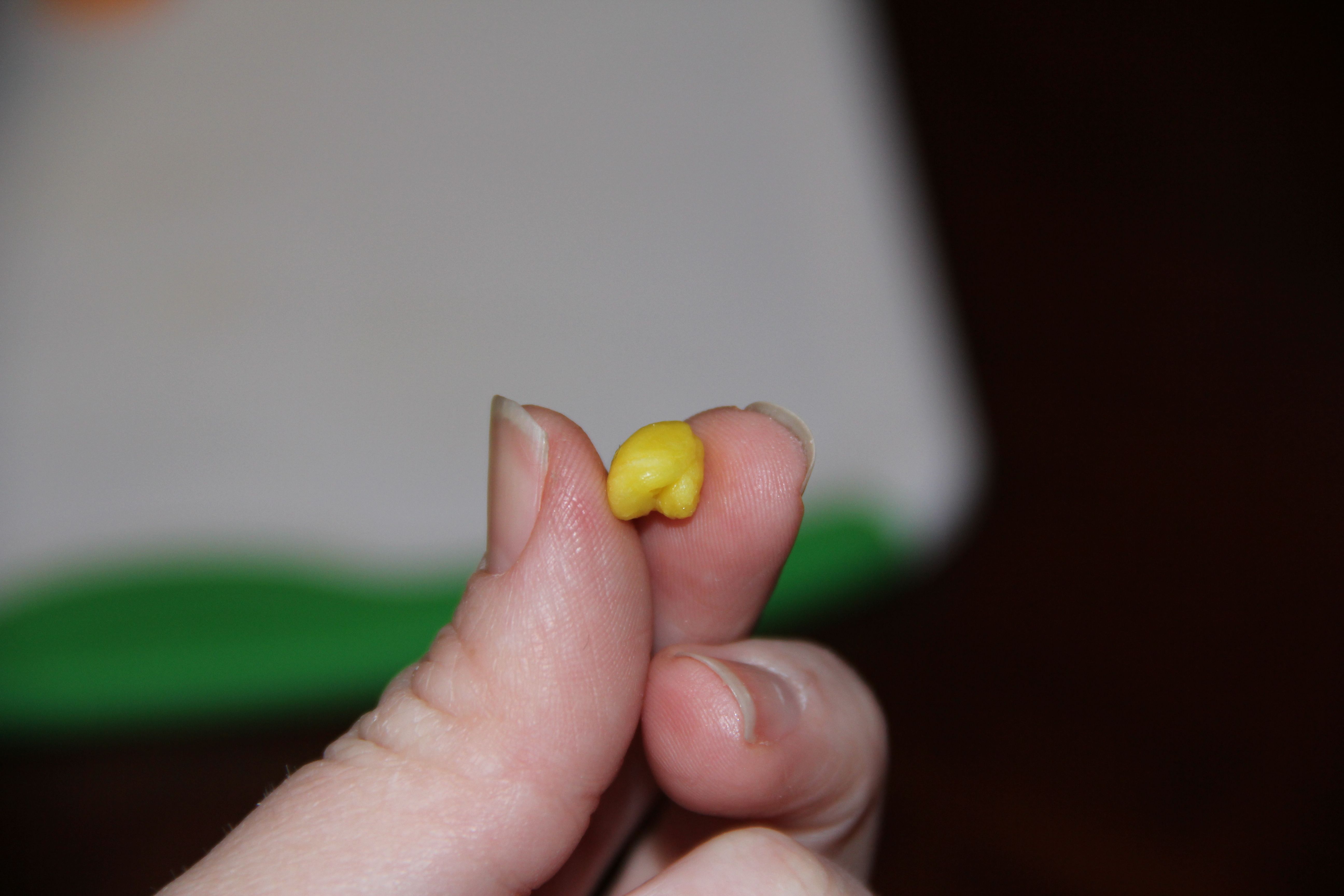 The next step is to make the wings for the chick. Break off a very small piece of a yellow candy