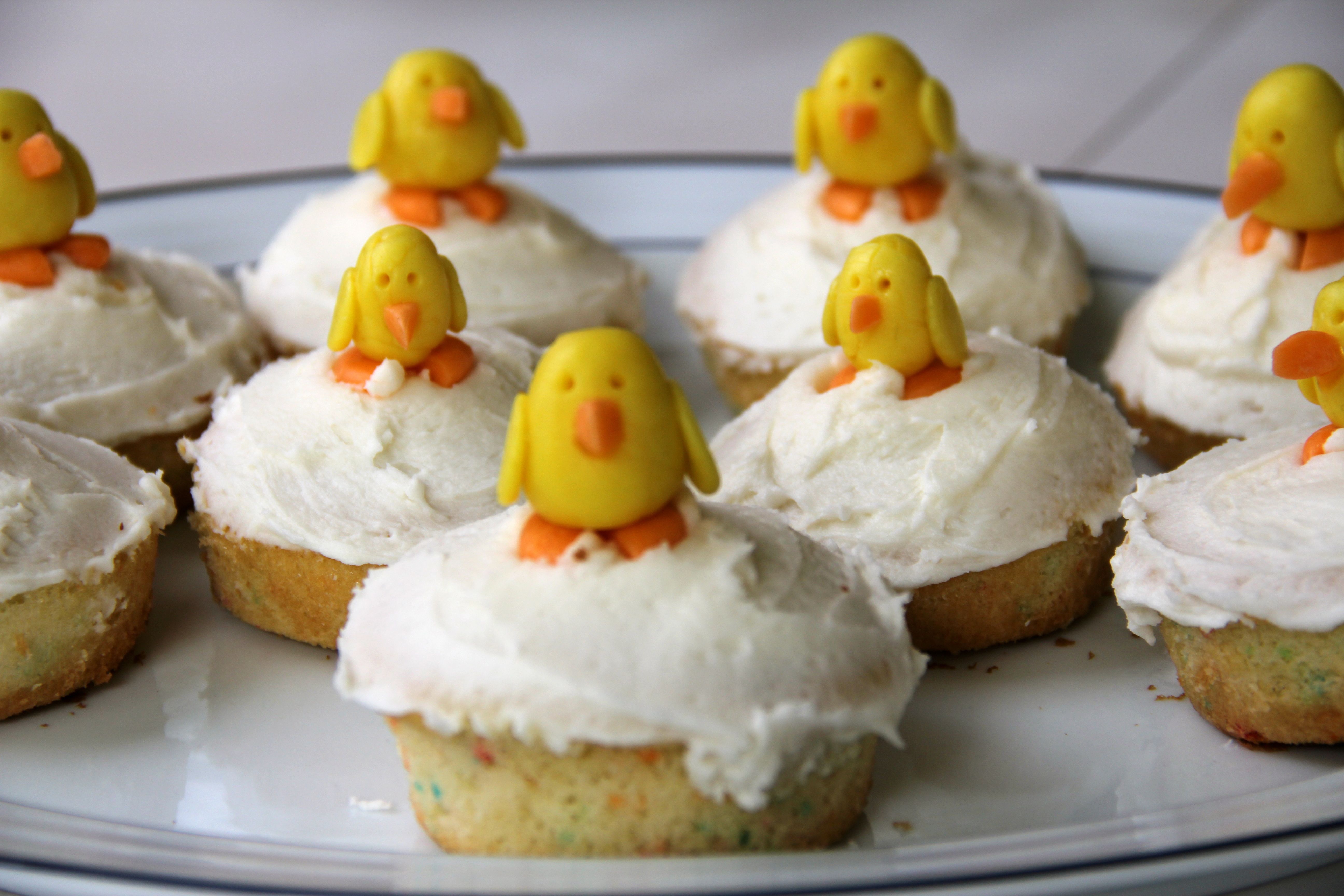 To answer your question, yes, those are Funfetti cupcakes. I kind of used up all of my energy on the chicks and phoned it in on the actual cupcakes. Whatever, the chicks are the real stars of the show anyways.