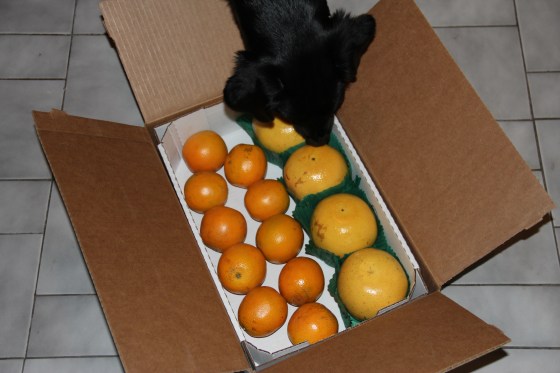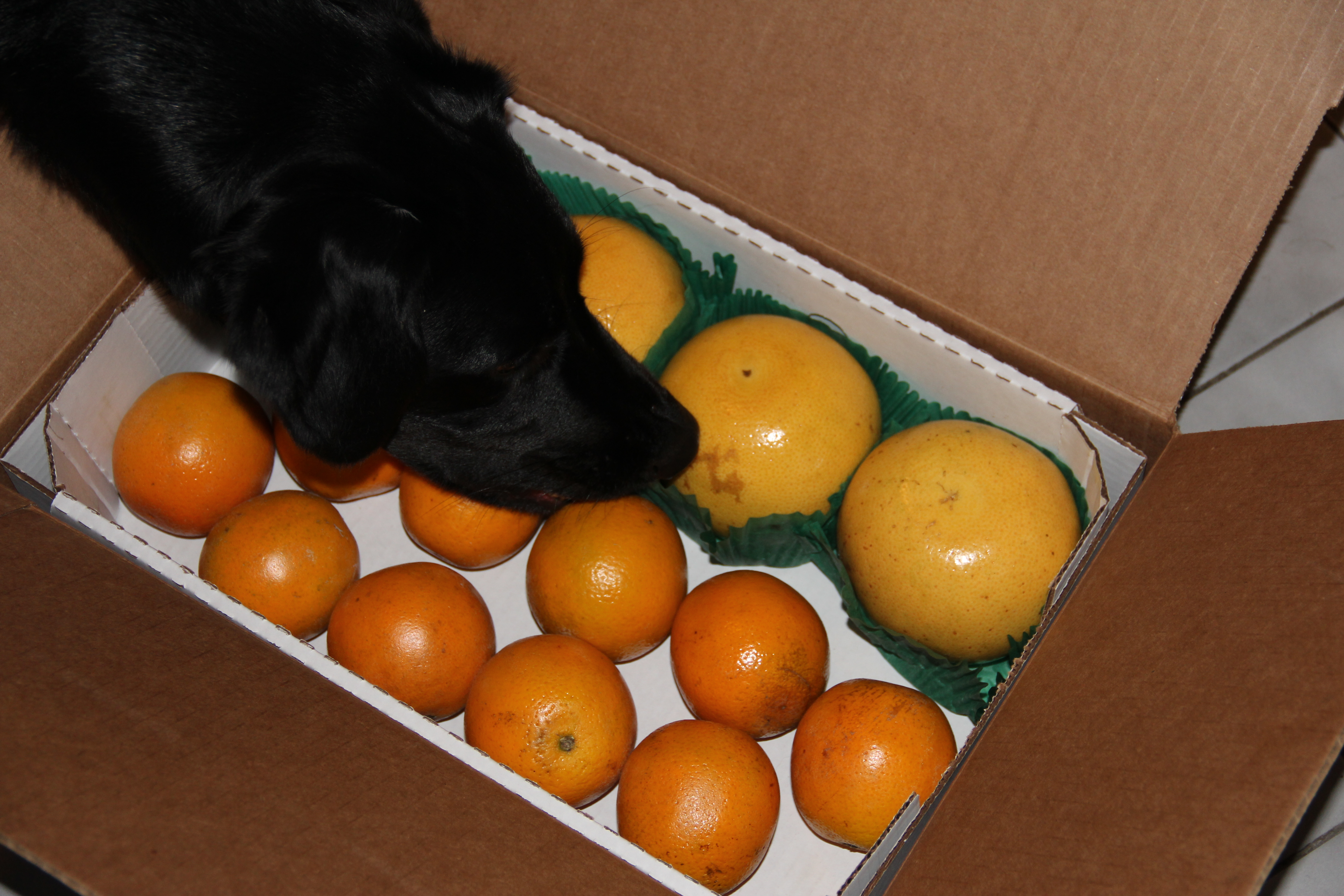 Citrus, straight from the tree! These guys are delicious and we like to pretend that we’re sitting by her pool eating them (although if I were in Florida, I would probably be spending my time hunting ‘gators – more on that here). Bonus points for readers if you can spot the hound nose in the picture above.