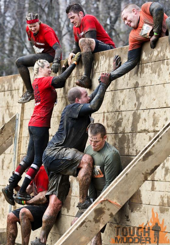 I would recommend wearing tighter-fitting pants or running tights or something to protect your knees and shins when you’re crawling over rocks and so that they won’t get weighed down by the mud. I would also recommend wearing gloves. TM does a great job of getting people motivated to get in shape for the event. Do the training that they send you or that they post on their website. For people who don’t have exercises that they usually do, just follow their training – it’s a great way to get ready for the event.