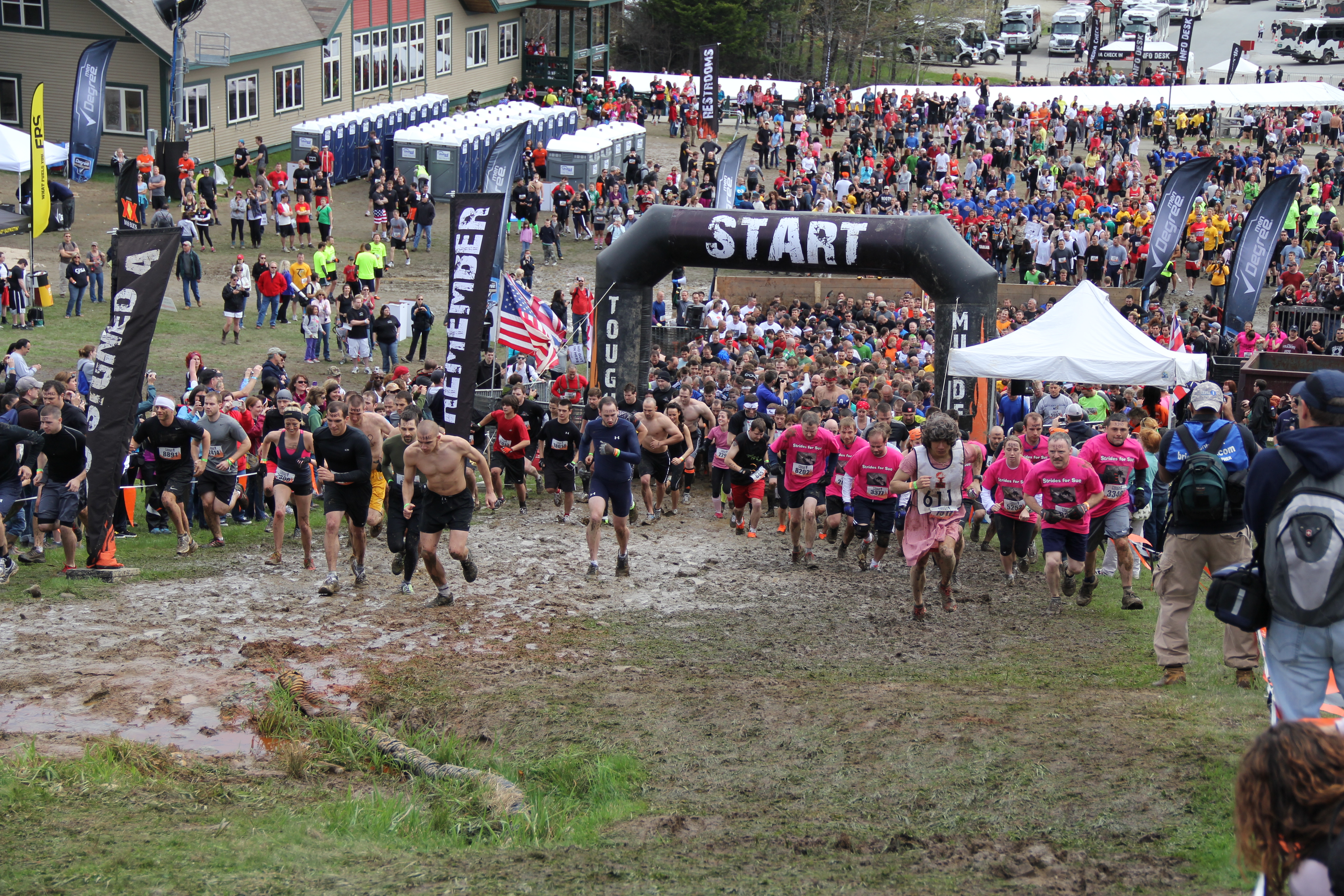After a round of the Tough Mudder Pledge and the National Anthem, the Mudders were off! The course started off with a muddy hill, followed by another muddy hill, and then they were out of sight.