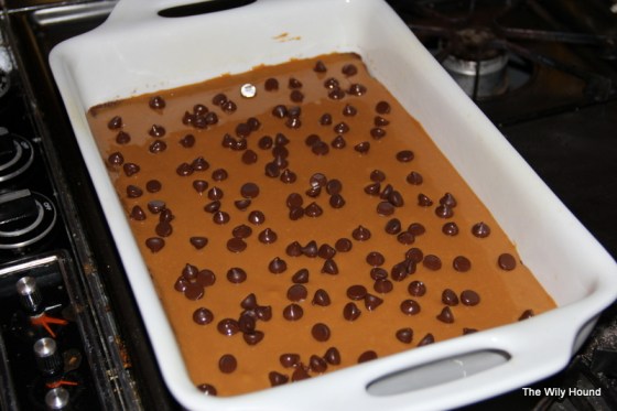 I based the brownie portion of these bad boys off of this recipe here and since there were going to be a few people at the bash in Vermont, I doubled the recipe so that I could make them in a 9×13 inch pan.
