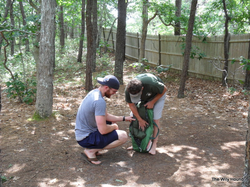 After cramming the car full of gear on Saturday morning and grabbing some iced coffees for the road, we headed down almost to the very end of Cape Cod and set up shop at the campground. It was great seeing what supplies made the cut once we got down there-between our car and my brother PJ’s car, we had 4 coolers, 2 grills, and 3 headlamps but Justin and I had to rock/paper/scissors for the 1 sleeping bag, 1 sleeping pad and 1 blanket that we brought down with us (in case you were wondering, I ended up with the sleeping pad and the blanket and Justin got the sleeping bag and the ground. Fair trade, wouldn’t you say?).