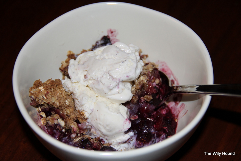 I mentioned in yesterday’s post that I made good use of the 4 pounds of berries that made it home with me from Trader Joe’s by making some berry crisp. It came out pretty good and was nowhere to be found within an hour of its exit from the oven.