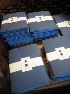 The look of the band holding the invite together and the little lighthouse on the front stole my heart and my mind was made up: come heck or high water, we would recreate those bad boys.