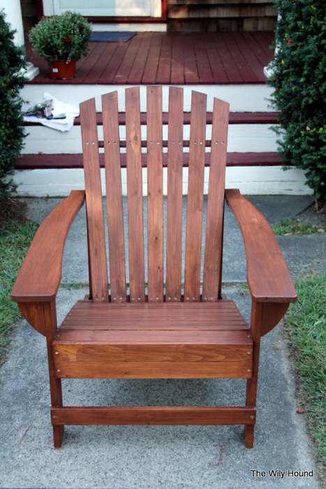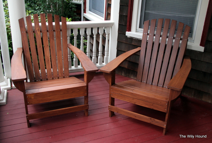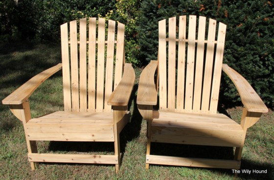 I went to see my sister and her husband’s new house on Saturday (it’s great!) and was inspired by the projects that they have going on, so I woke up on Sunday with a mission in mind: those adirondack chairs would be festooned by the end of the day or my hound isn’t wily.