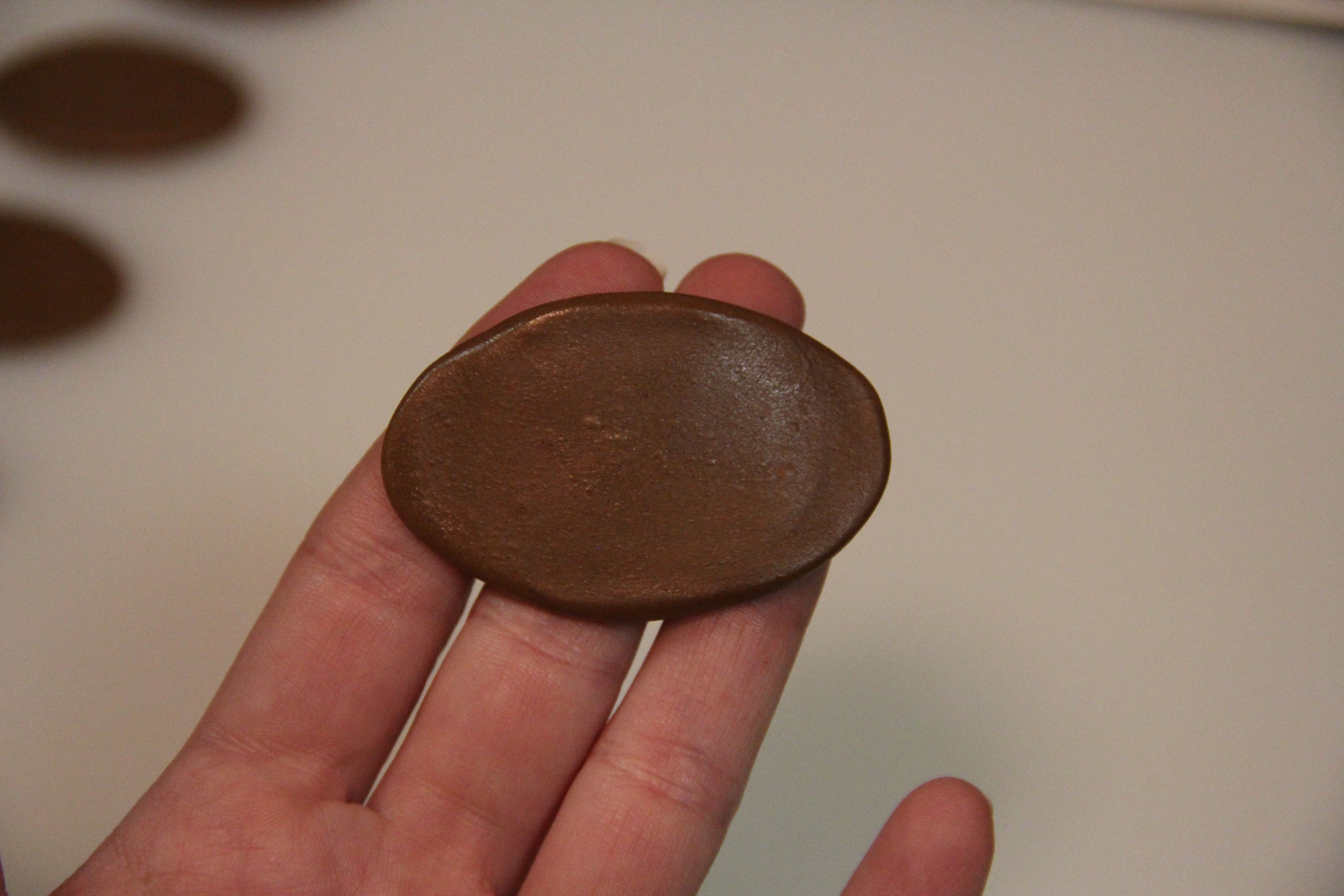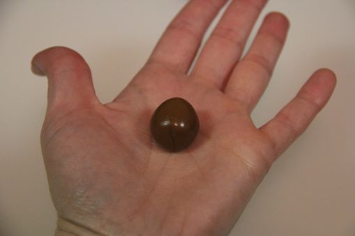 Then roll the ball back and forth between your hands a few times to make an egg shape.
