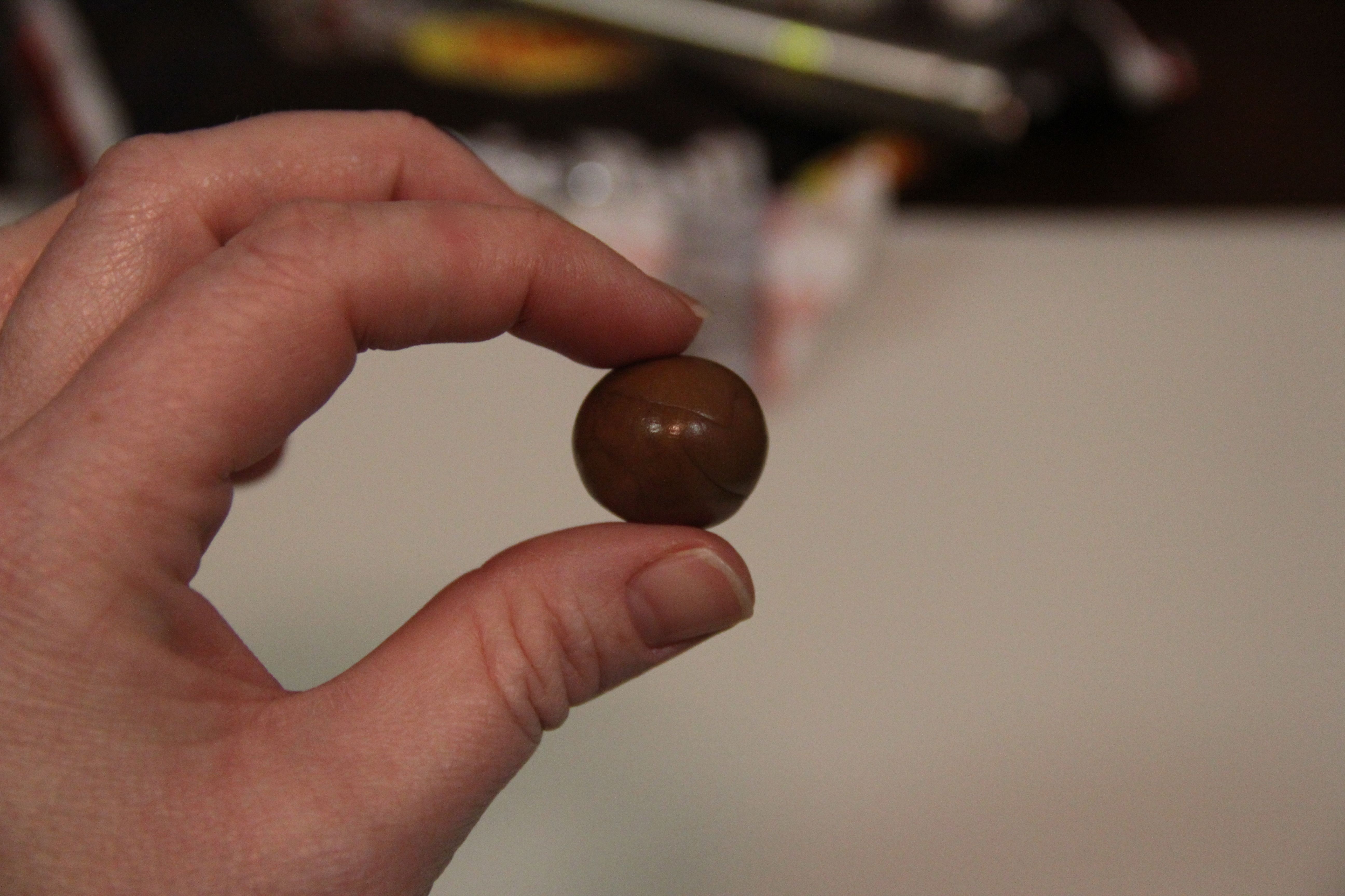 Knead the candy a little bit with your fingers to lose the original shape, then roll it between your hands to form a ball.