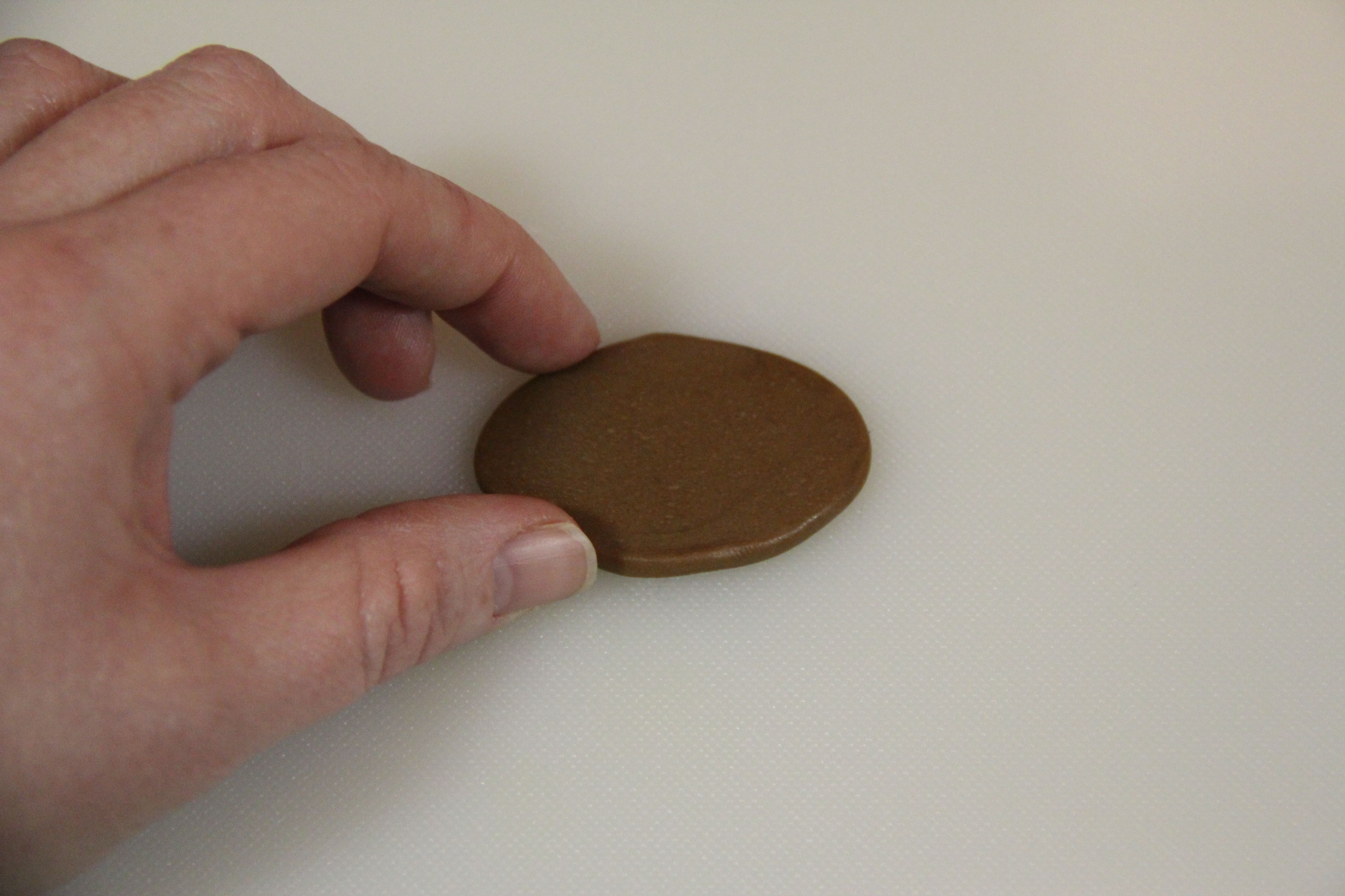 Unwrap it and pop it in the microwave for a few seconds. You want the candy to be soft enough to mold but not hot enough to burn your fingers (and believe me, it will burn. It will actually stick to your fingers while it burns them and you’ll panic a little trying to figure out how to get it off without burning your other fingers). Depending on the strength of your microwave, anywhere between 5-10 seconds will work. Start off with 5 seconds and see how it goes.