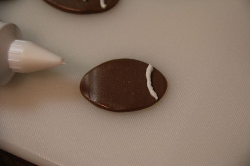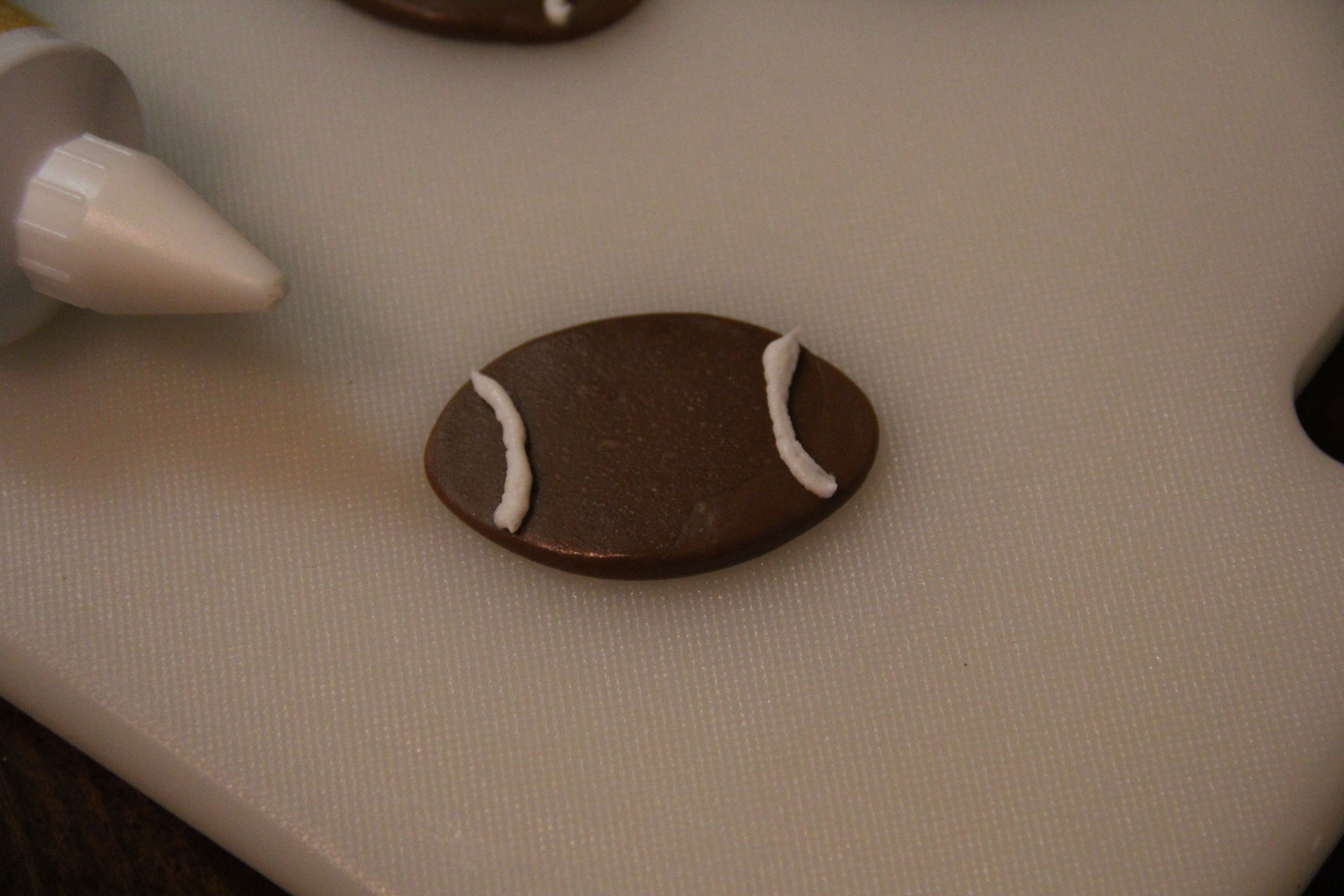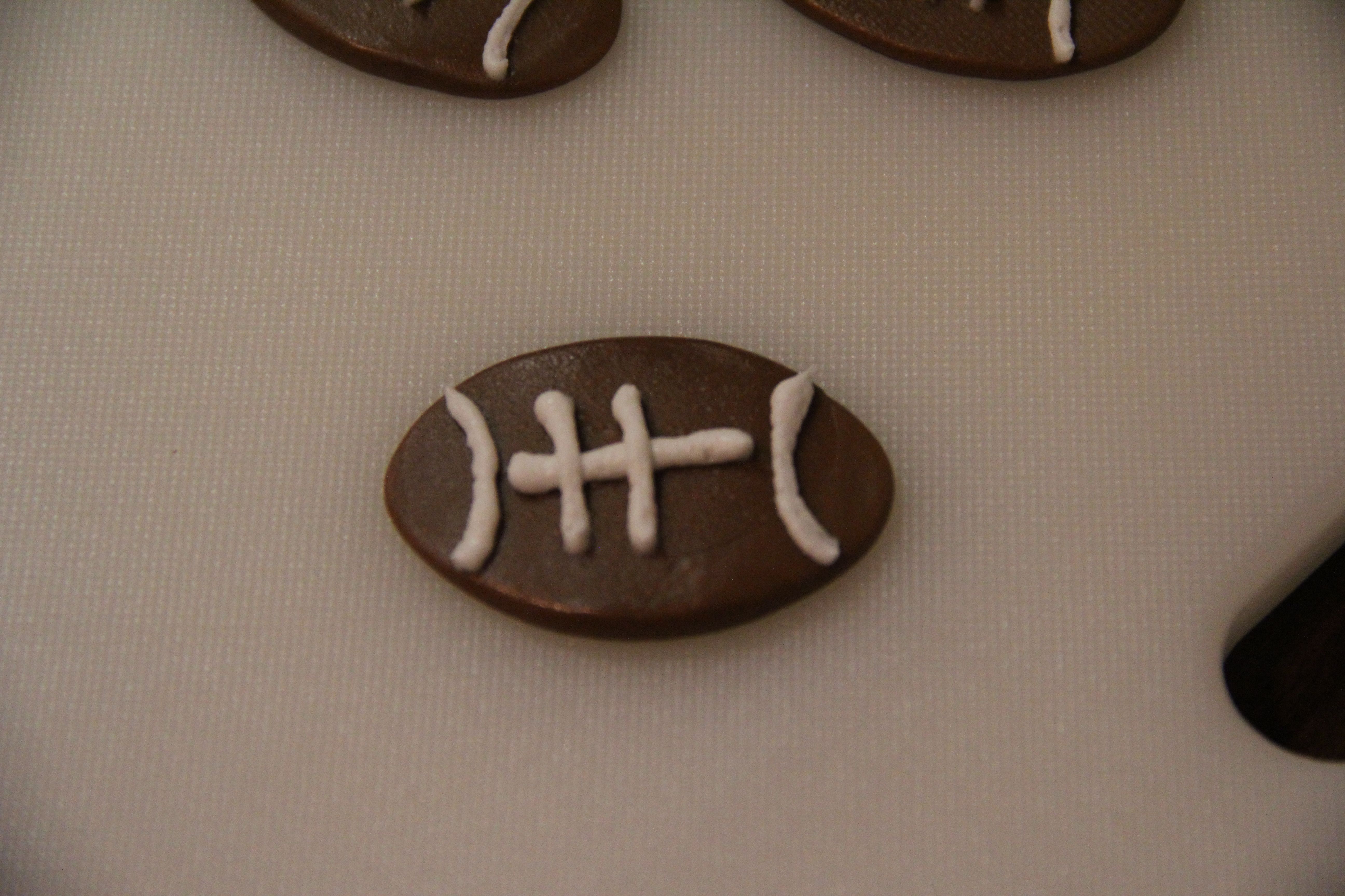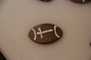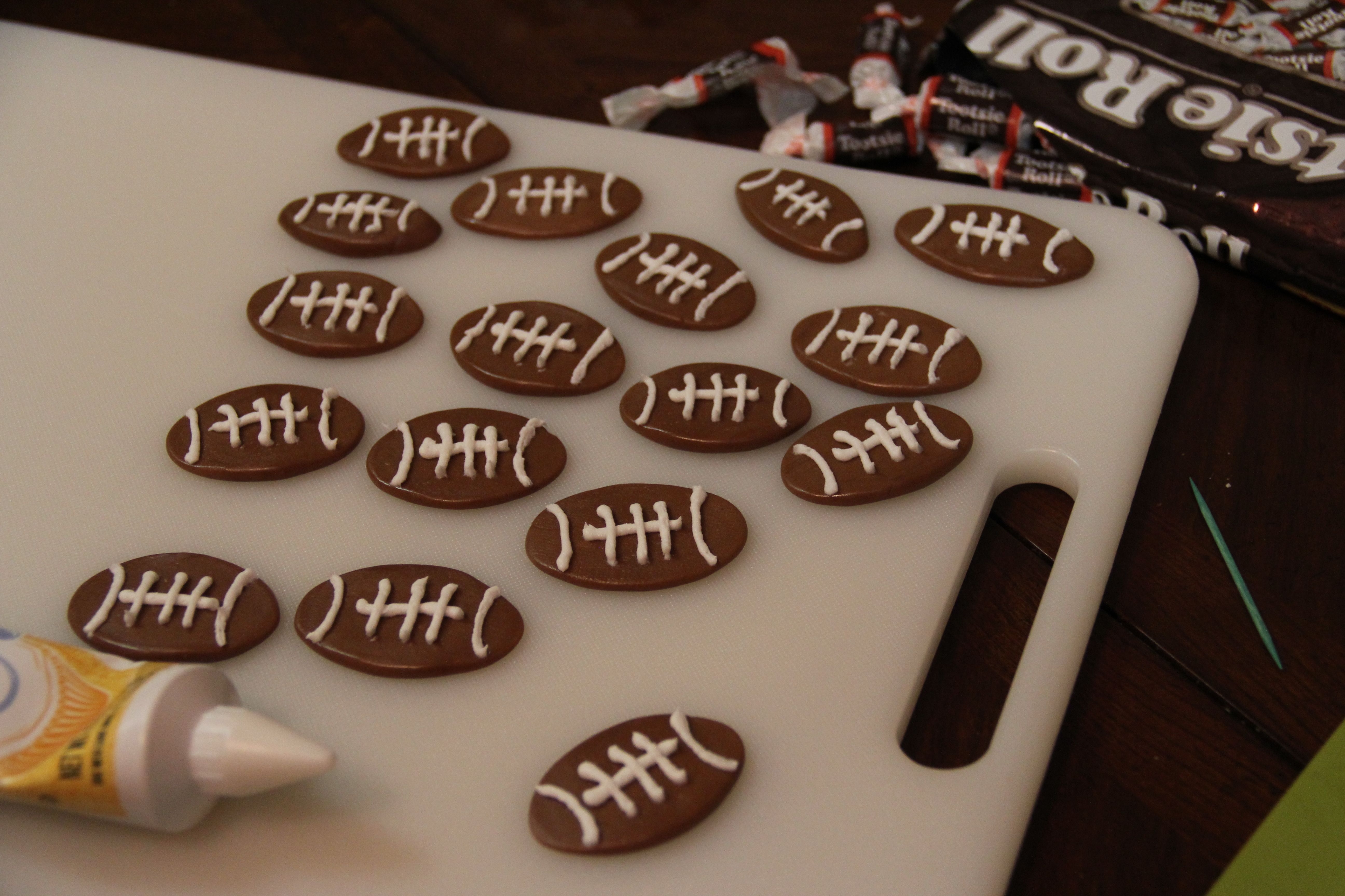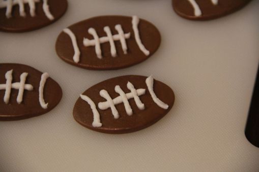 Play around with the icing a little to get the hang of it before you tackle (HA! See what I did there?) piping the footballs.