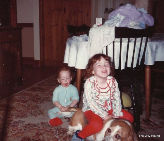 My brother and sister with Sturdley, circa 1982. Note my brother’s death grip on Sturd’s tail. My mother would want me to request that you disregard the laundry on the dining room table.