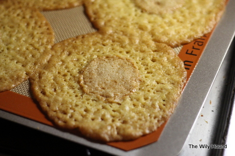 The odd thing about these cookies is that, though ugly enough to be considered inedible, they’re delicious. Justin gave them an enthusiastic thumbs up and I agreed wholeheartedly, but on taste alone. I mean, come on – look at them. They’re ridiculous. They’re the size of a dinner plate and wafer-thin, and there’s a very real chance that they will rip out your fillings once you get to the caramel center.