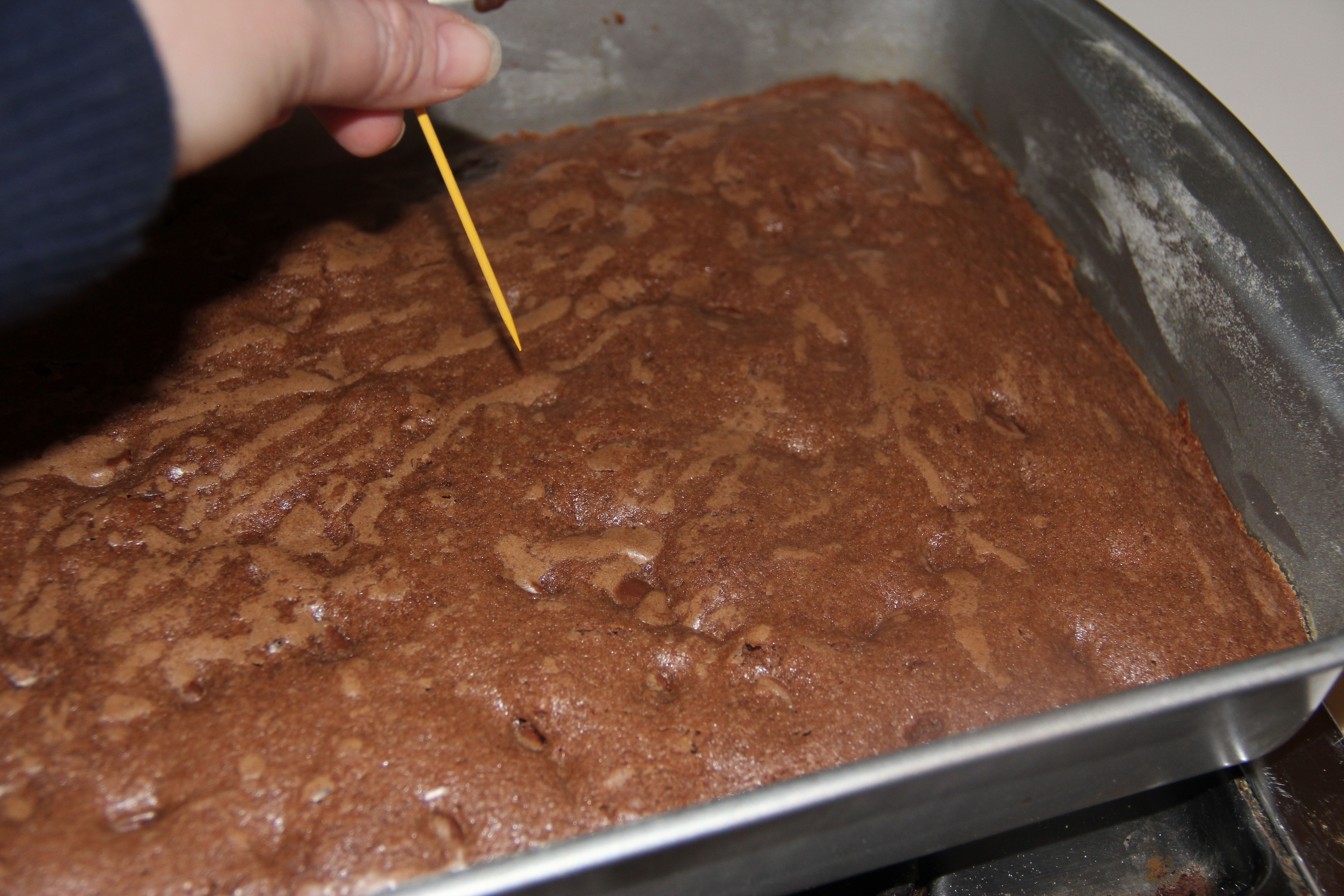 Bake the brownies for about 20 minutes or until an inserted toothpick comes out clean.