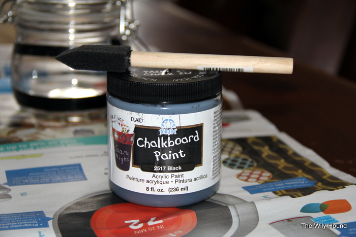 Ever since I finished the framed chalkboard project a few weeks ago, the little bucket of leftover chalkboard paint has been calling to me from the craft basket. There wasn’t enough left to take on a big project, but there was enough in there that it felt wasteful to kick it to the curb.